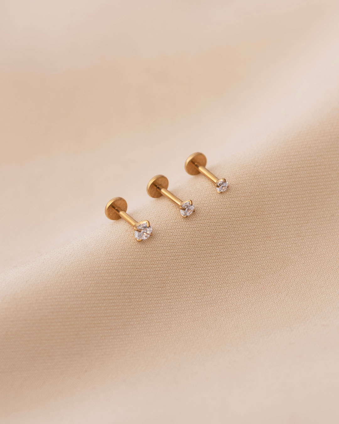 The Luxo is a tiny stud featuring a single round clear stone set at the front. Its clean, minimal design makes it versatile—perfect for the main lobe, upper lobe, helix, other upper-ear piercings, and as a nose stud. Made from titanium, it’s also ideal for new piercings.