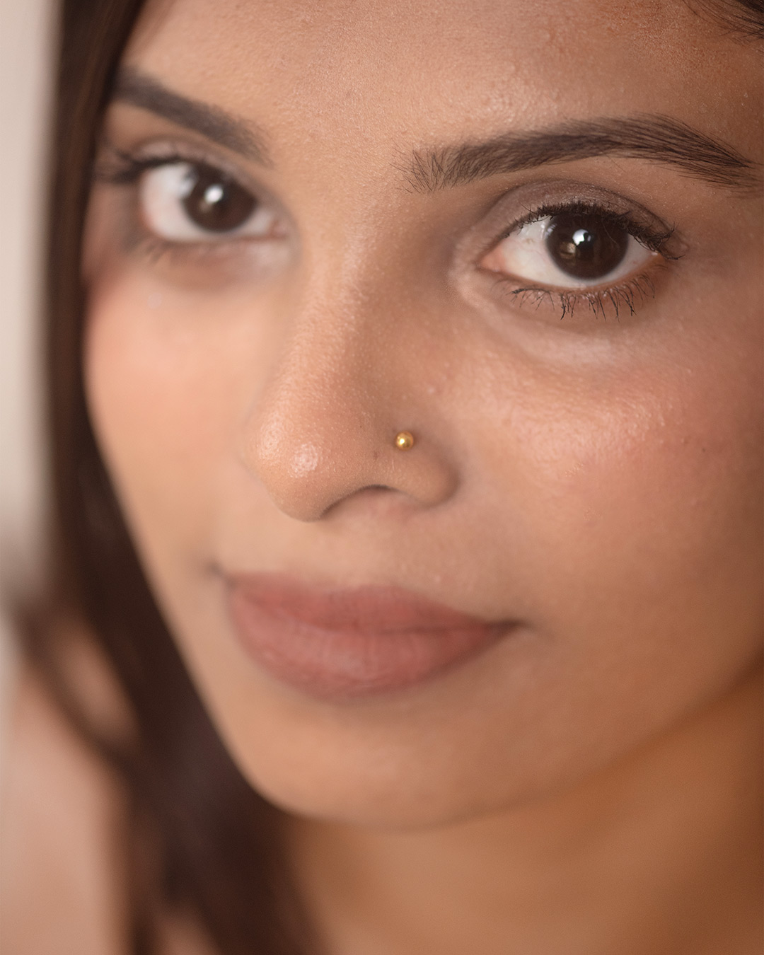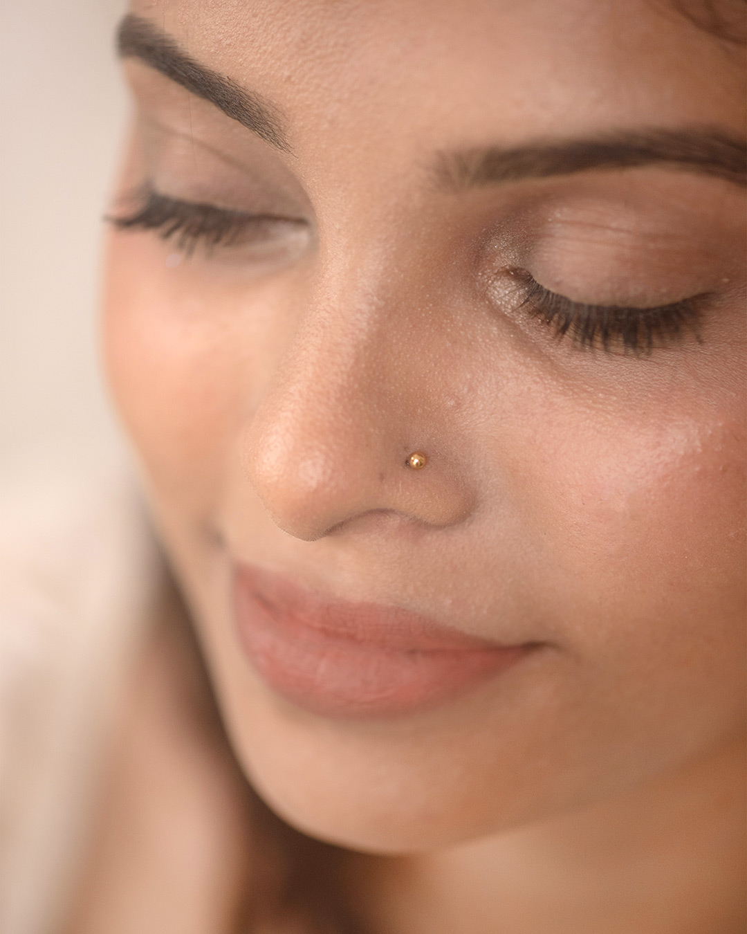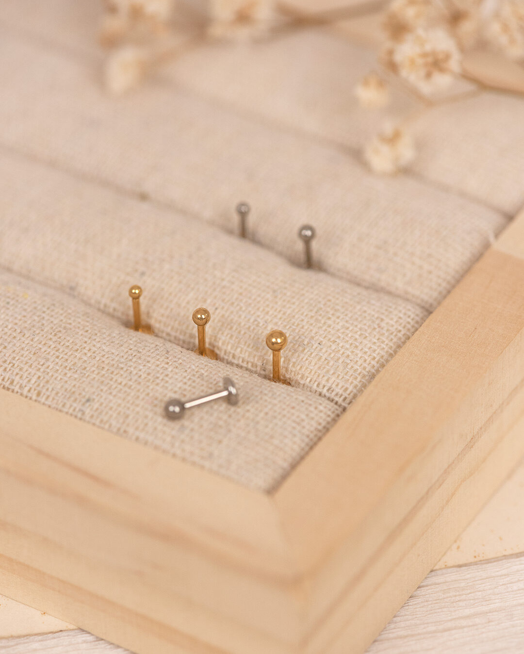 A polished, micro-sized metal sphere that sits flat against the skin. Minimal and understated, it works beautifully across the main lobe, upper lobe, helix, other upper ear piercings, or as a delicate nose pin.